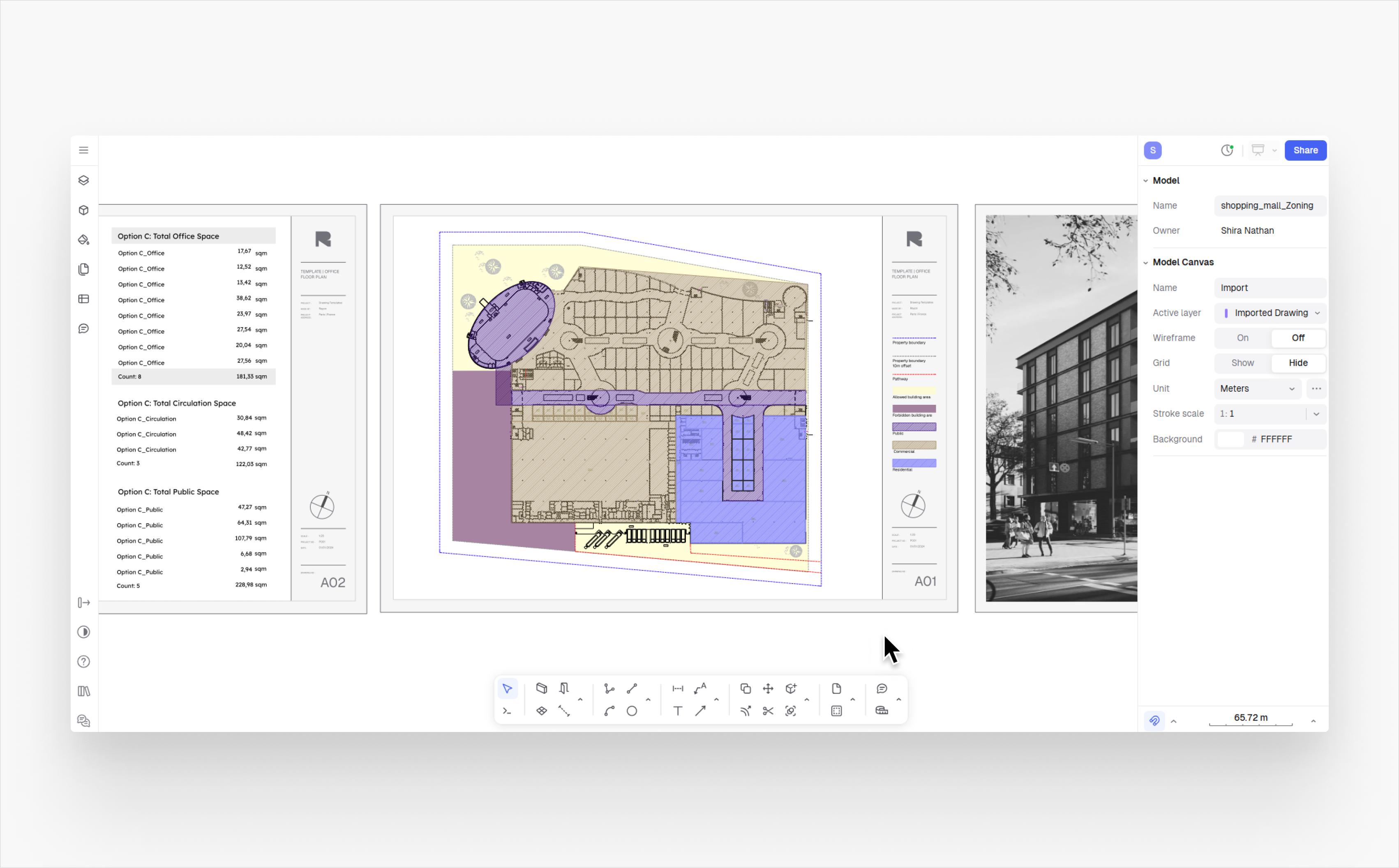 Vous êtes à la dernière étape ! Maintenant que vous avez votre plan de zonage architectural et un tableau de données, organisez-les sous forme de `pages` et partagez-les directement depuis Rayon **via un lien URL**.