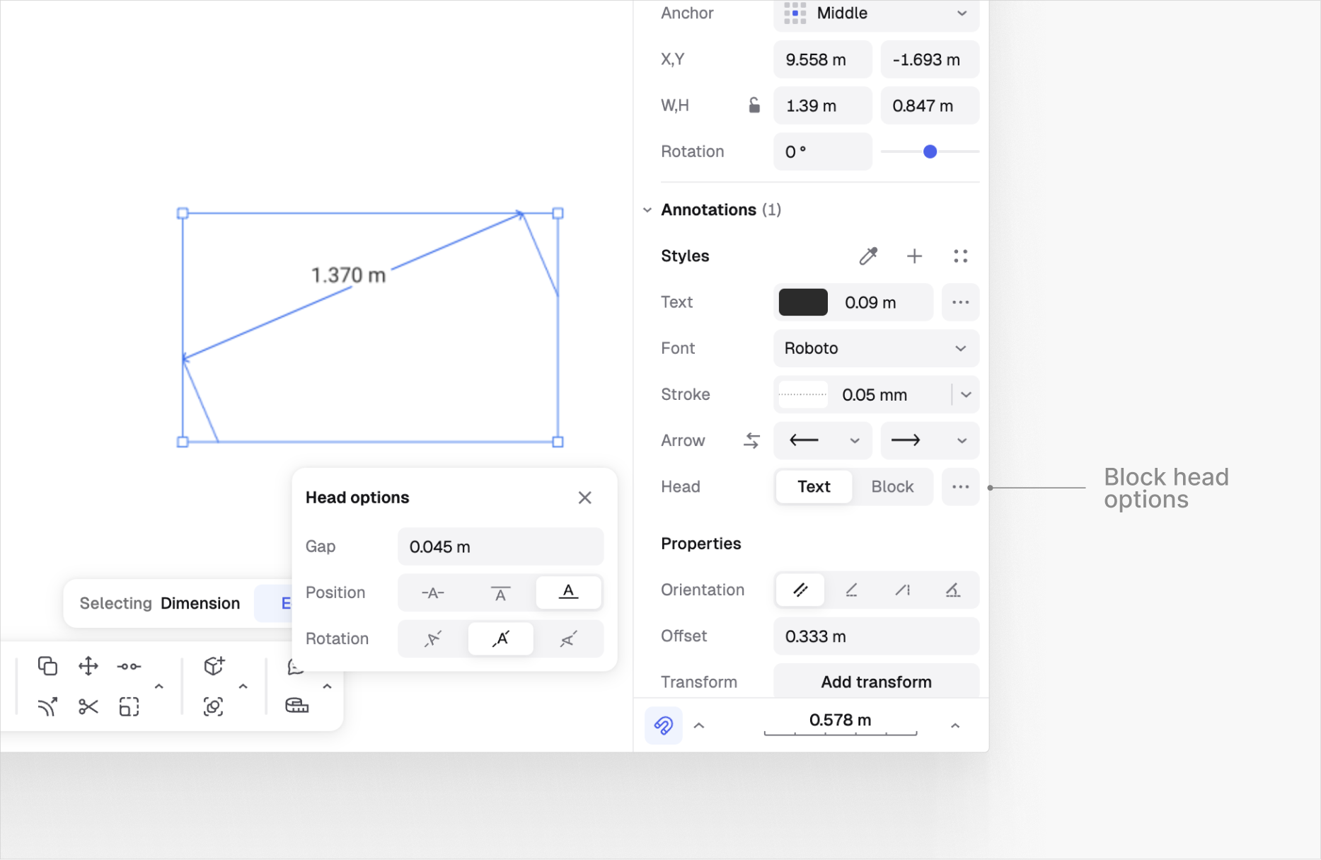 Annotation now allow users to decide how to place leader's and dimension's texts, by controlling the annotation **`gap`**, **`rotation`** and **`position`**.&#x20;