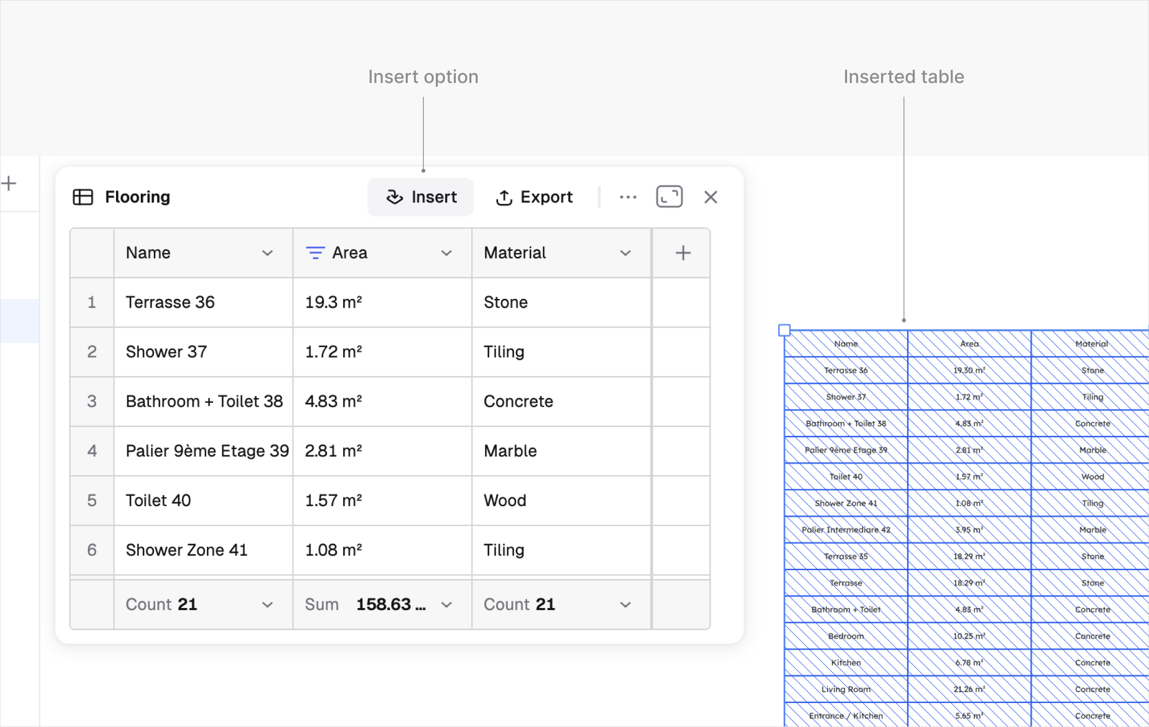 A major addition of this month is the **ability for users to insert tables on the canvas directly**. This new table object can be resized, formatted and manually edited to represent any data. We also added the option to expand tables into full-screen mode, for a smoother browsing experience.